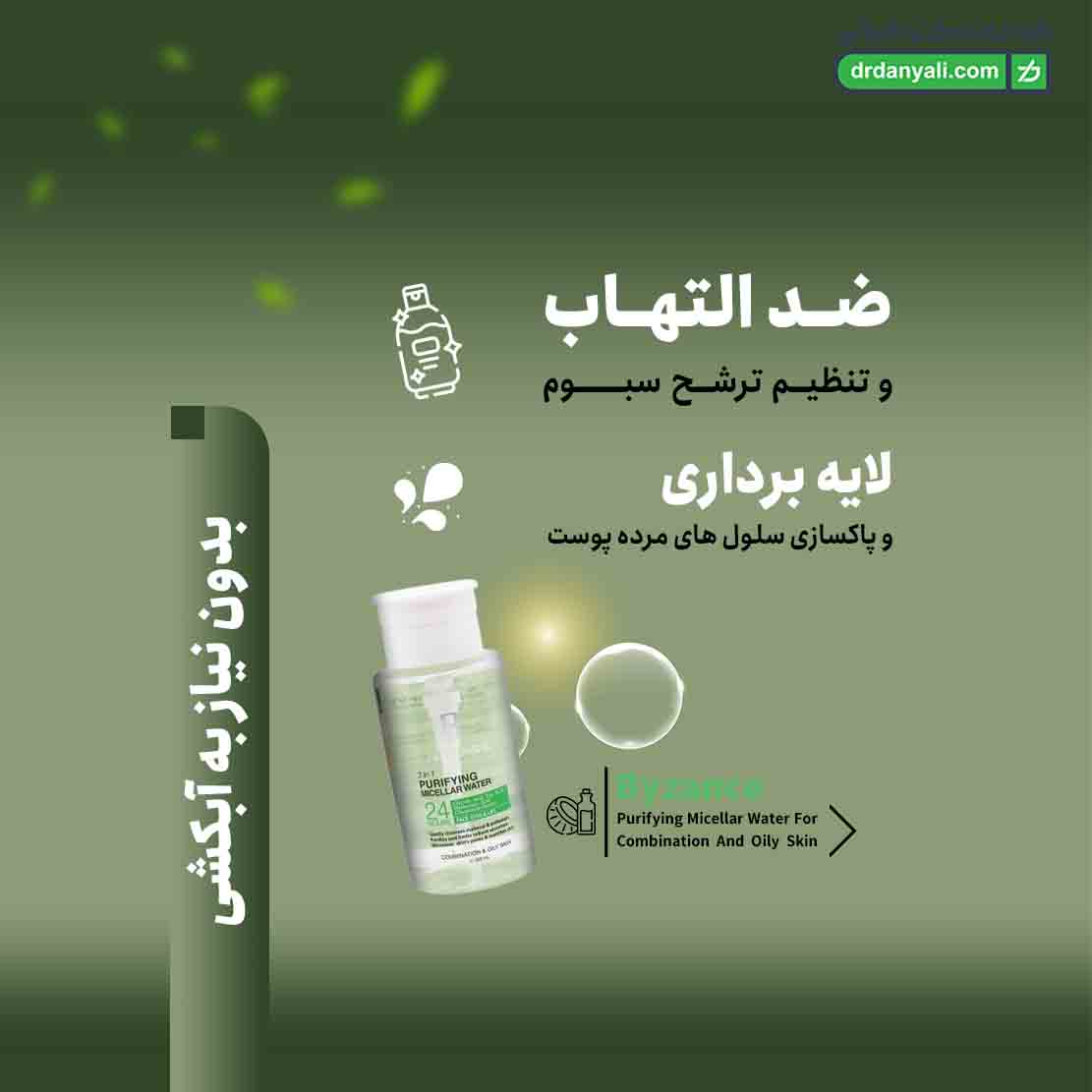 ویژگیهای محلول پاک کننده آرایش پوست چرب 3 در 1 بیزانس: