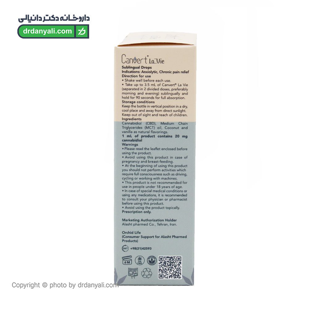 قطرههای زیرزبانی La Vie Convert از عصاره گیاه Cannabis sativa ساخته شدهاند و اثرات مسکن و ضد اضطراب قوی دارند. ماده مؤثر این محصول کانابیدیول (CBD) است که بر کیفیت خواب، خستگی روزانه، احساسات و عواطف تأثیر میگذارد. این محصول یک آنتیاکسیدان قوی است که در بهبود خلق و خو و تمرکز ذهنی مؤثر است و به کاهش اختلالات خواب و بهبود کیفیت خواب کمک میکند.