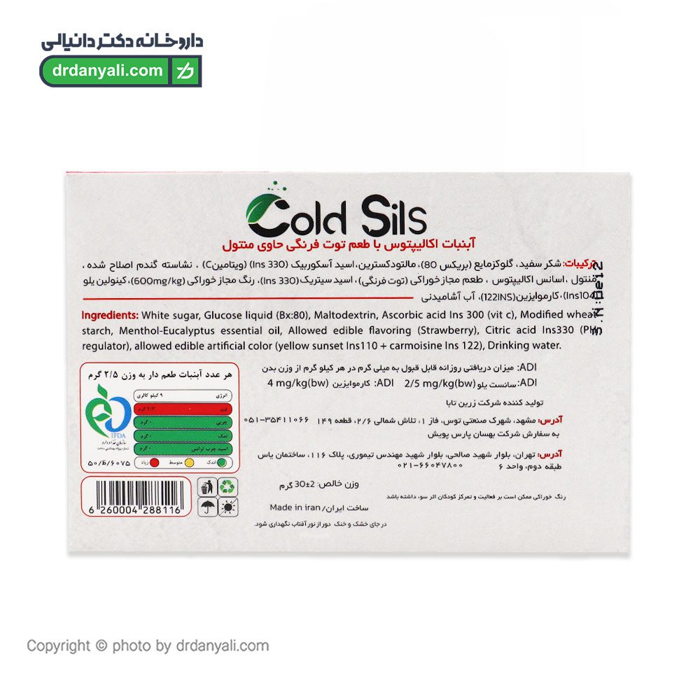 آبنبات سرد اکالیپتوس Coldsils که در ۷ طعم مختلف موجود است، نفس را تازه میکند، گلودرد را تسکین میدهد و به جلوگیری از بدتر شدن سرماخوردگی کمک میکند. این آبنباتها حاوی ویتامین C، اکالیپتوس و منتول هستند که در تسکین مشکلات تنفسی ناشی از گرفتگی بینی، گلودرد و تازه کردن مجاری تنفسی و همچنین مشکلات تنفسی شبانه بسیار مؤثر هستند.