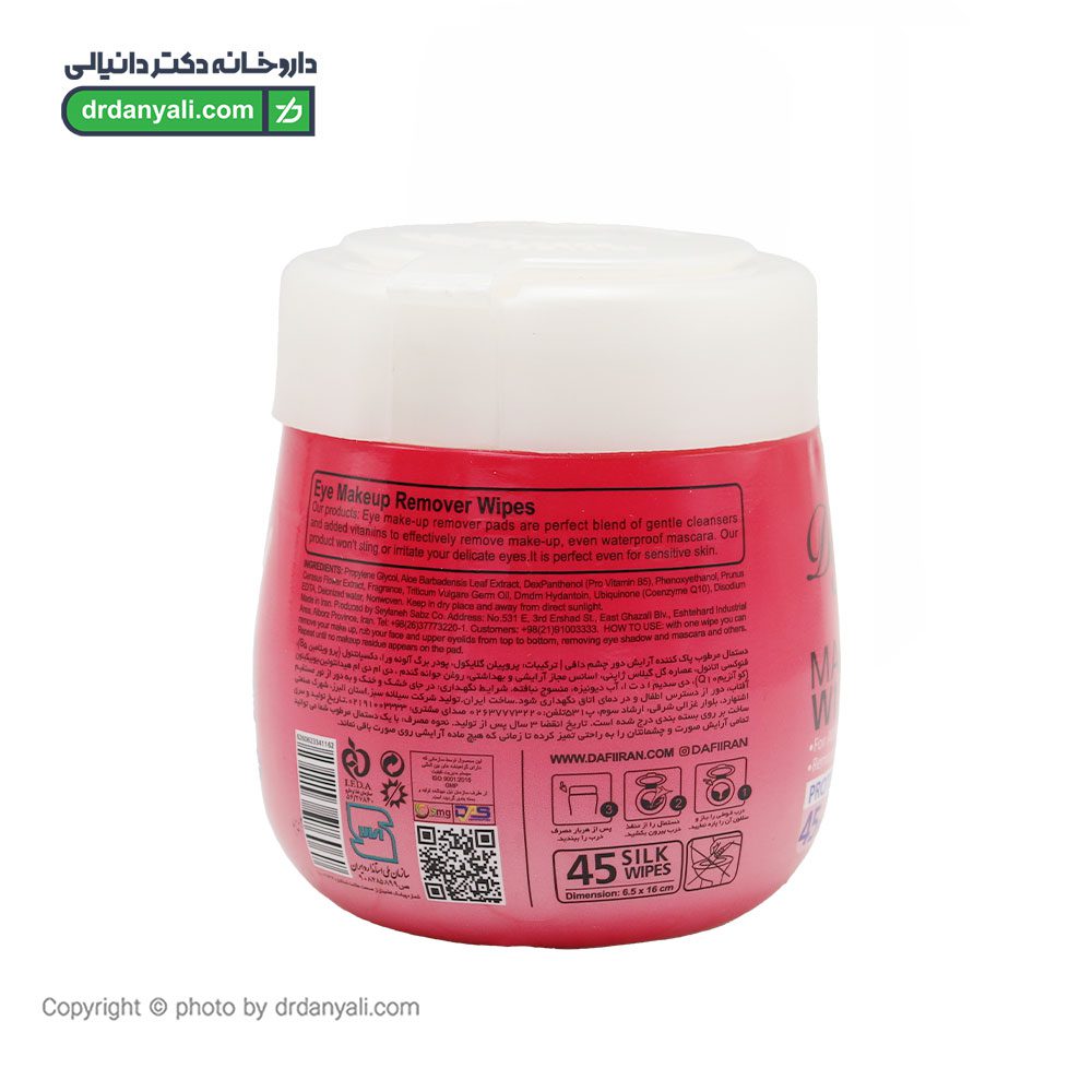 دستمال مرطوب پاک کننده آرایش دور چشم دافی 45 عدد