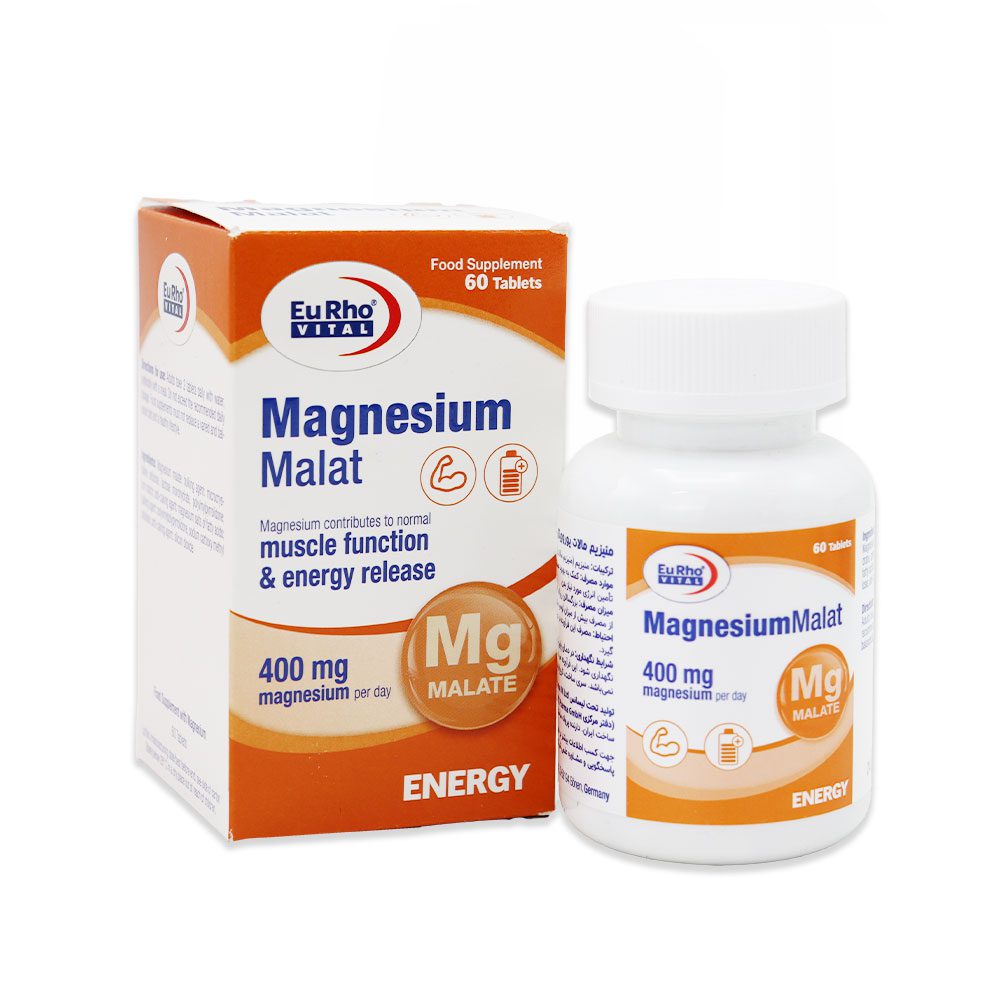 قرصهای منیزیم مالات یوروویتال به میزان زیادی جذب میشوند، انرژی فراهم میکنند، خستگی را تسکین میدهند، عملکرد عضلات و اعصاب را بهبود میبخشند و از کمبود منیزیم جلوگیری میکنند. این محصول حاوی ترکیبی از منیزیم و اسید مالیک است که جذب بالایی در سیستم گوارش دارد و نقش کلیدی در تولید انرژی سلولی و بهبود عملکرد عضلات و اعصاب ایفا میکند. منیزیم برای بیش از ۳۰۰ واکنش آنزیمی در بدن ضروری است؛ وجود آن برای تعادل الکترولیت، عملکرد طبیعی عضلات، سلامت قلب و تنظیم سیستم عصبی حیاتی است.