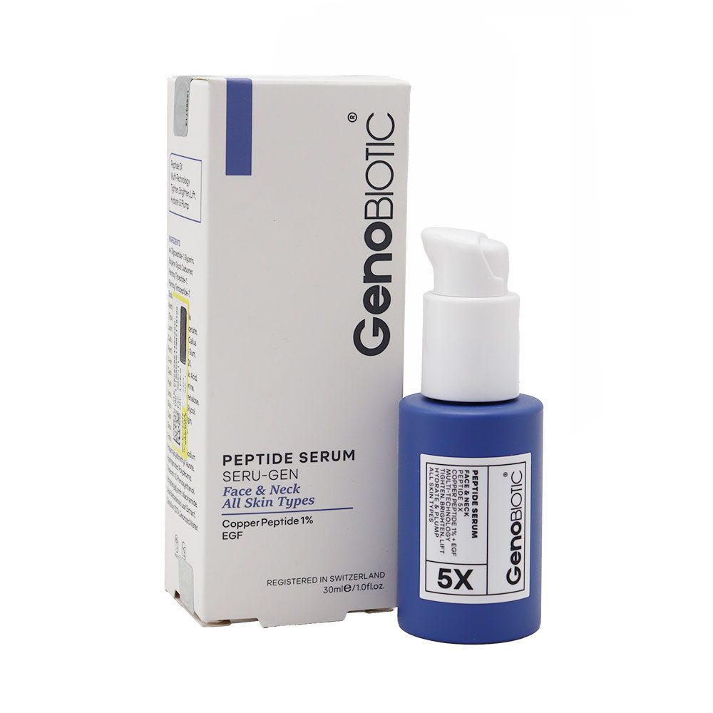 سرم پپتایدی ژنوبایوتیک، برای بازسازی و تقویت ساختار پوست و بهبود کیفیت پوست صورت و گردن طراحی شده است. این سرم با ترکیبات مؤثر و نوآورانهای مانند پپتیدهای مختلف، اسید هیالورونیک و فاکتور رشد اپیدرمی (EGF) روند بازسازی و جوانسازی پوست را تسریع میکند. این سرم فوقالعاده مؤثر، از افتادگی پوست جلوگیری میکند، چین و چروک را کاهش میدهد و پوست را درخشان میکند.