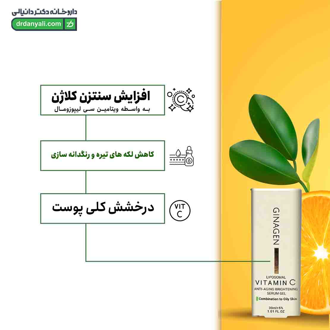 ژل روشنکننده ویتامین سی ژیناژن مناسب پوست چرب و مختلط 30 میل