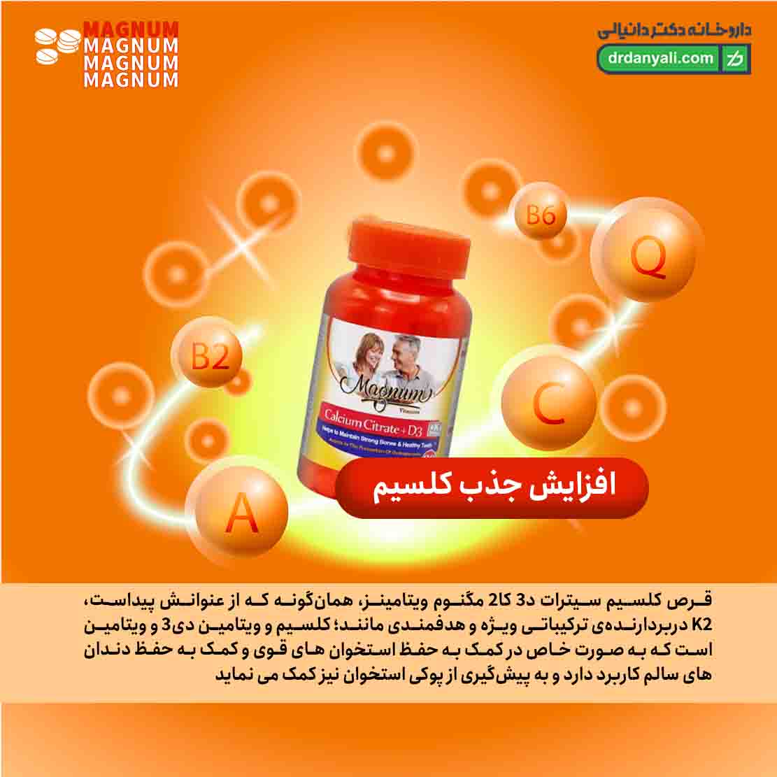 ویژگیهای قرص کلسیم سیترات د۳ کا۲ مگنوم ویتامینز: