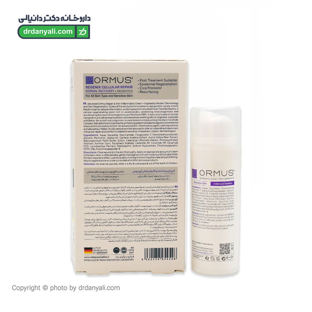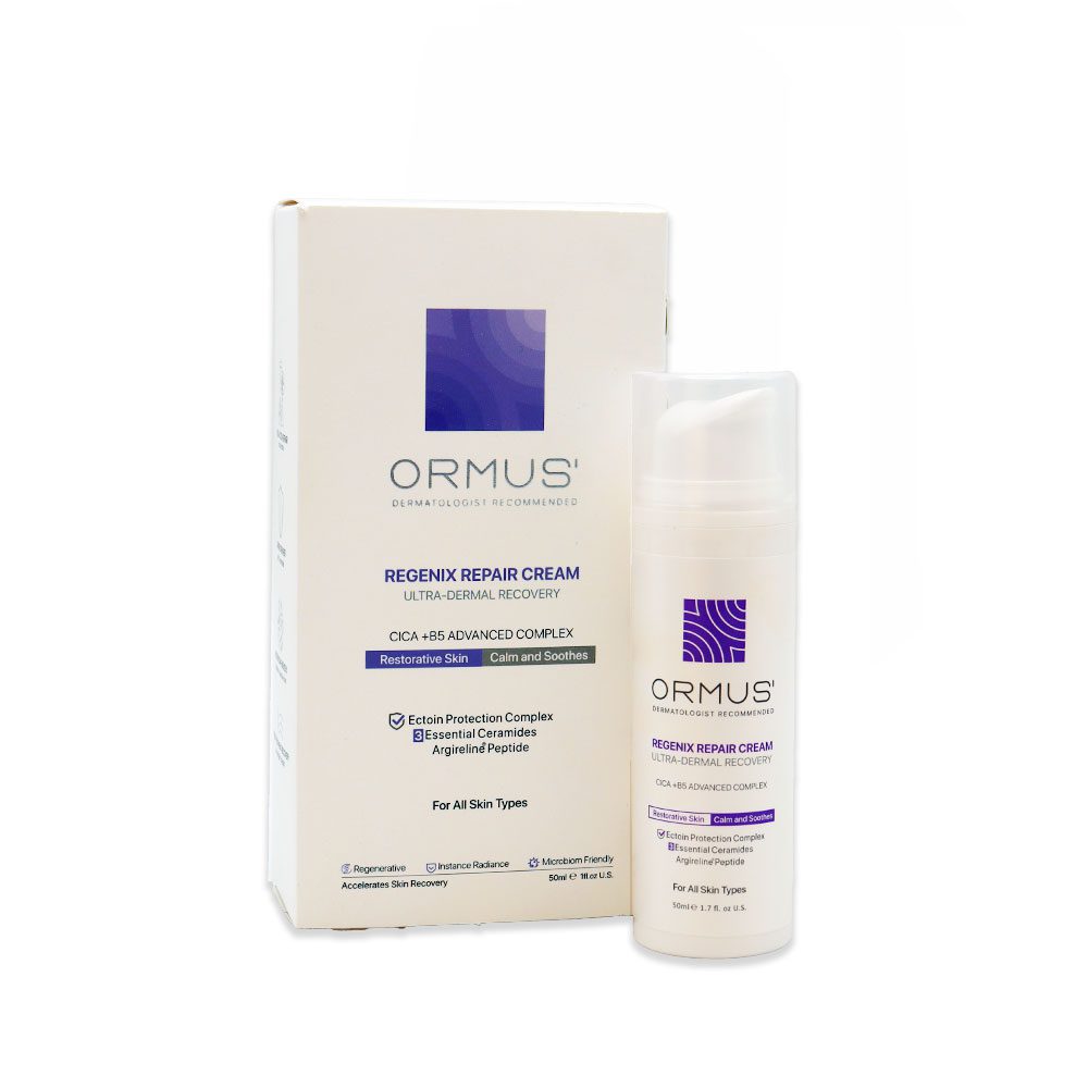 کرم ترمیم کننده و التیام بخش اورموس 50 میلی لیتر Ormus Regenix Repair Cream 50ml؛ حاوی مواد اثربخشی همچون؛ ترکیب پیشرفتهی CICA و ویتامین B5، همراه با سرامیدها و پپتید آرژیرلاین و اکتوین، به ترمیم سریع سد محافظ پوست و کاهش التهاب، قرمزی و خشکی کمک میکند و برای انواع پوست و نیز پوست های حساس قابل بکارگیری است.