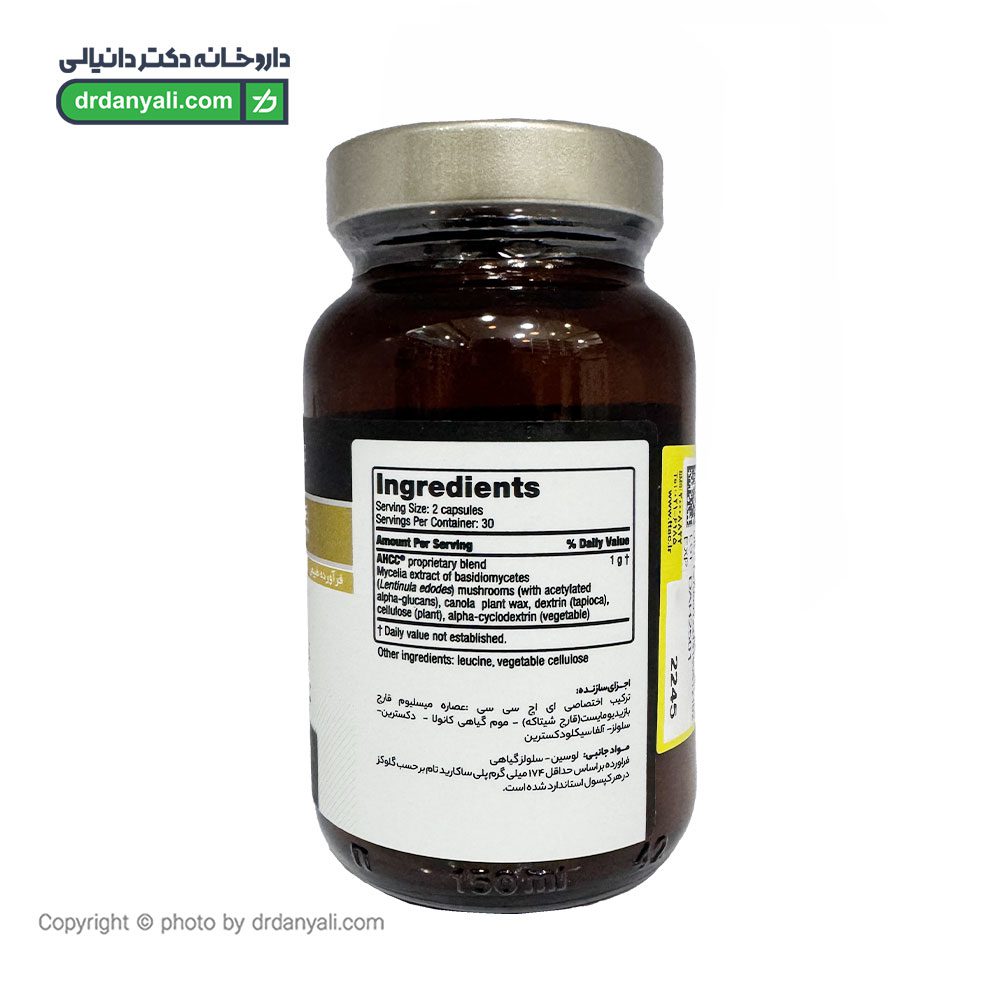 - هر کپسول حاوی؛ ۵۰۰ میلیگرم ای اچ سی سی (AHCC) برگرفته از عصارهی قارچ شیتاکه