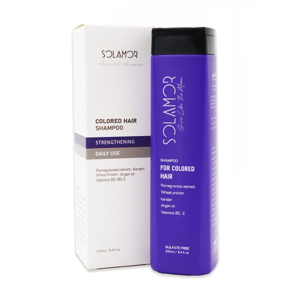 شامپو تقویت کننده موی رنگ شده سولامور، مو را تغذیه میکند، بافت آن را بهبود میبخشد، از آن محافظت میکند و شادابی رنگ را تشدید میکند. شامپو سولامور بدون سولفات، به طور ویژه برای موهای رنگ شده فرموله شده است و به طور موثر مو و پوست سر را تمیز میکند. این شامپو پوست سر و فیبر مو را مرطوب و نرم میکند و خشکی، شکنندگی و موخوره را از بین میبرد. همچنین به تثبیت رنگ مو و افزایش دوام آن کمک میکند. این شامپو حاوی عصاره انار، کراتین، روغن آرگان، پروتئین گندم و ویتامینهای B5 ،B6 و E است و میتوان روزانه از آن استفاده کرد.