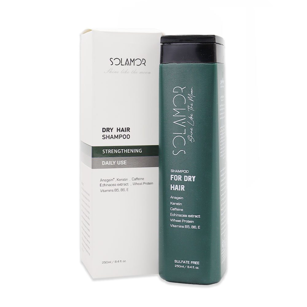 شامپوی سولامور، بدون سولفات و فرموله شده برای موهای خشک، مو و پوست سر را عمیقاً تمیز میکند. فرمول آن حاوی کمپلکس آناژین، کراتین، کافئین، عصاره اکیناسه، پروتئینهای گندم و ویتامینهای B5، B6 و E است که فولیکولهای مو را تغذیه کرده و استحکام را به موهای شکننده بازمیگرداند. پوست سر و فیبر مو را مرطوب و نرم میکند و گره خوردن مو را آسانتر میکند. این محصول حاوی سورفکتانتهای ملایم است و بدون سولفات، بدون پارابن و بدون گلوتن میباشد.