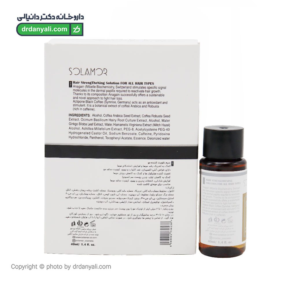 سرم تقویتکننده مو Solamor Fortifying Hair Serum 40ml یک سرم عالی برای آبرسانی و تقویت موهای ضعیف است. این سرم به لطف ترکیبات تقویتکننده و مغذی خود، رشد مو را تحریک کرده و ساختار آن را تقویت میکند. این محصول دارای خواص آنتیاکسیدانی و ضدالتهابی است، کیفیت فیبر مو را بهبود میبخشد، فولیکولها را تقویت کرده و ریزش مو را کاهش میدهد.